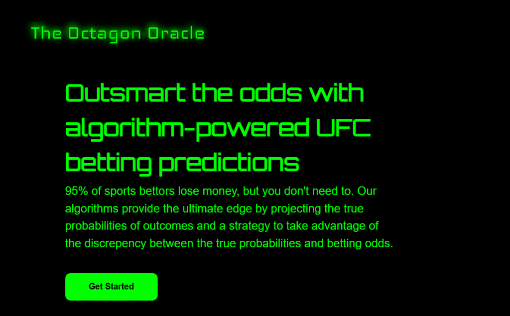 | The Octagon Oracle | UFC betting | $25/mo | No | Fight outcome prediction |