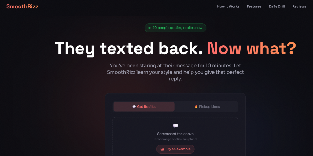 What it is: Smoothrizz.com delivers natural and flirty text suggestions based on analysis of thousands of real conversations.