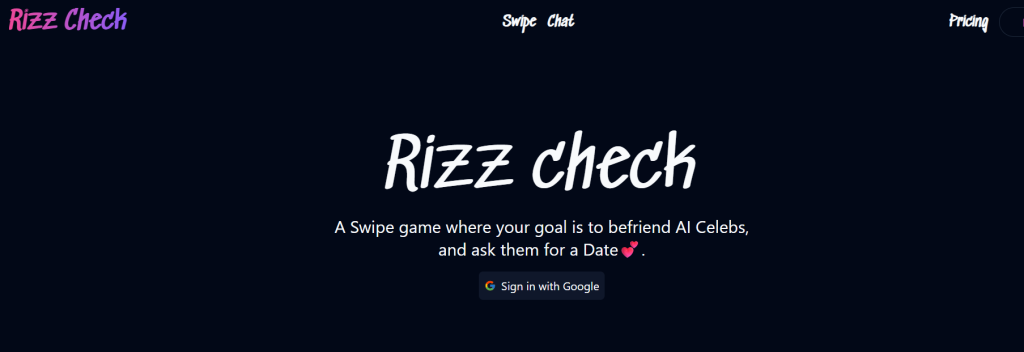 | Rizzcheck | Texting game | See site | No | Chat-based AI celebrity roleplay |