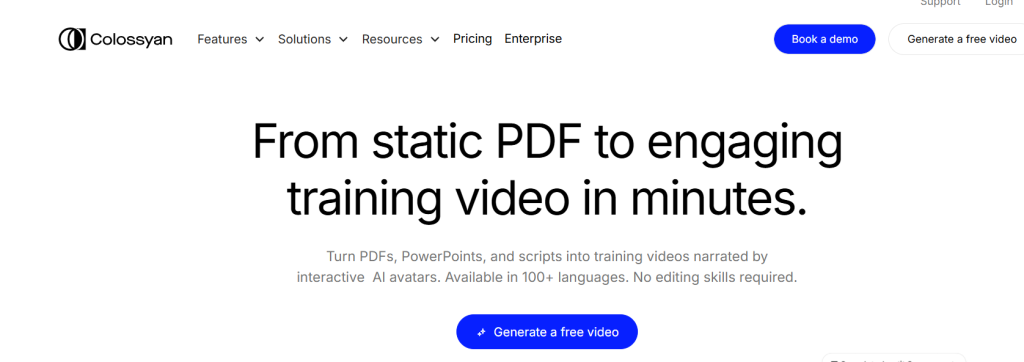 What it is: Colossyan turns text into realistic talking-head videos using AI avatars and voice synthesis.