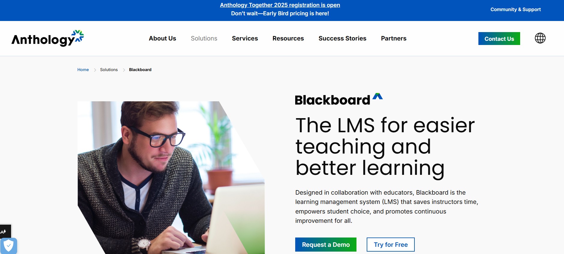 Blackboard by Anthology is a powerful learning management system (LMS) designed to enhance teaching and learning experiences. Built in collaboration with educators, Blackboard streamlines course creation, empowers student choice, and promotes continuous improvement with AI-driven tools, accessibility features, and data-driven insights.