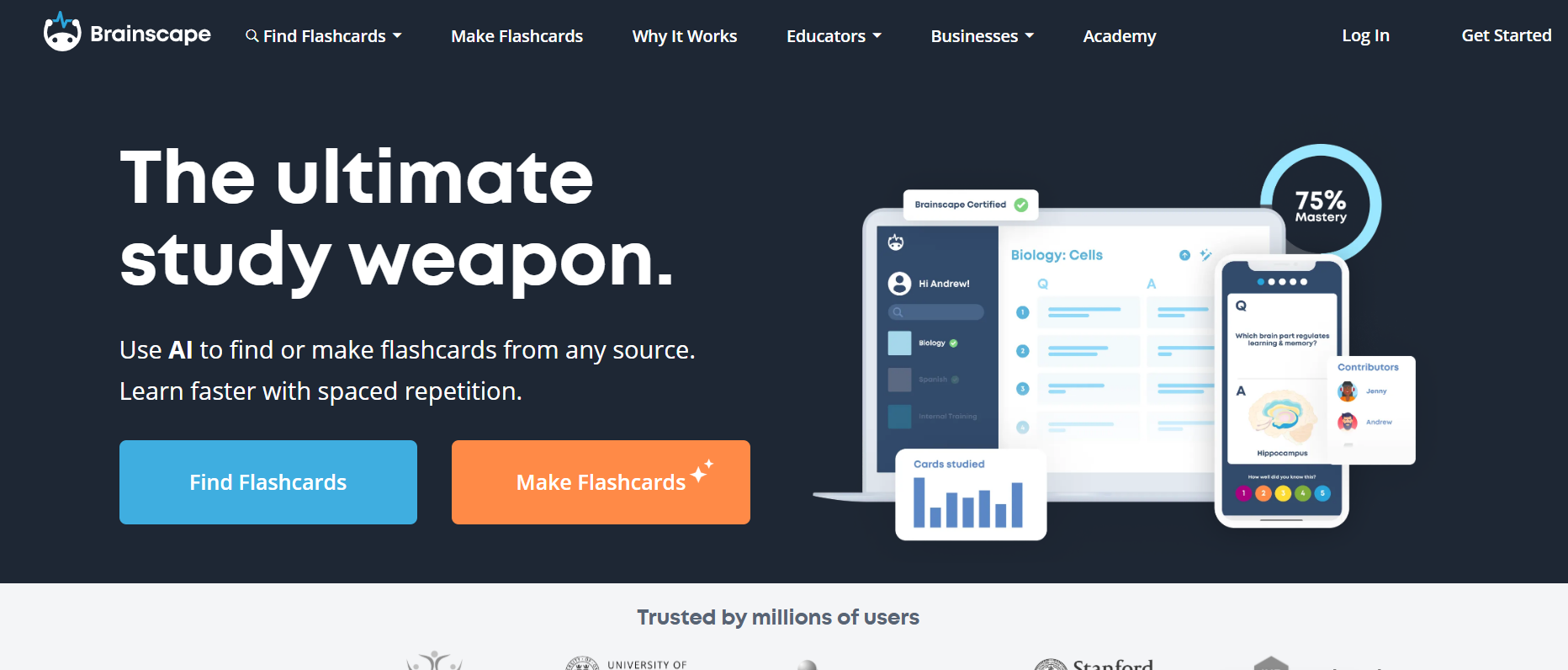 Brainscape revolutionizes learning with AI-powered flashcards designed to help you study smarter, not harder. Whether you’re preparing for exams, mastering a new language, or training employees, Brainscape’s scientifically backed spaced repetition method ensures maximum memory retention. Find pre-made flashcards from top educators or create your own with text, images, and sounds—fast and effortlessly. With Brainscape, you can learn twice as much in half the time, making studying more effective and efficient.