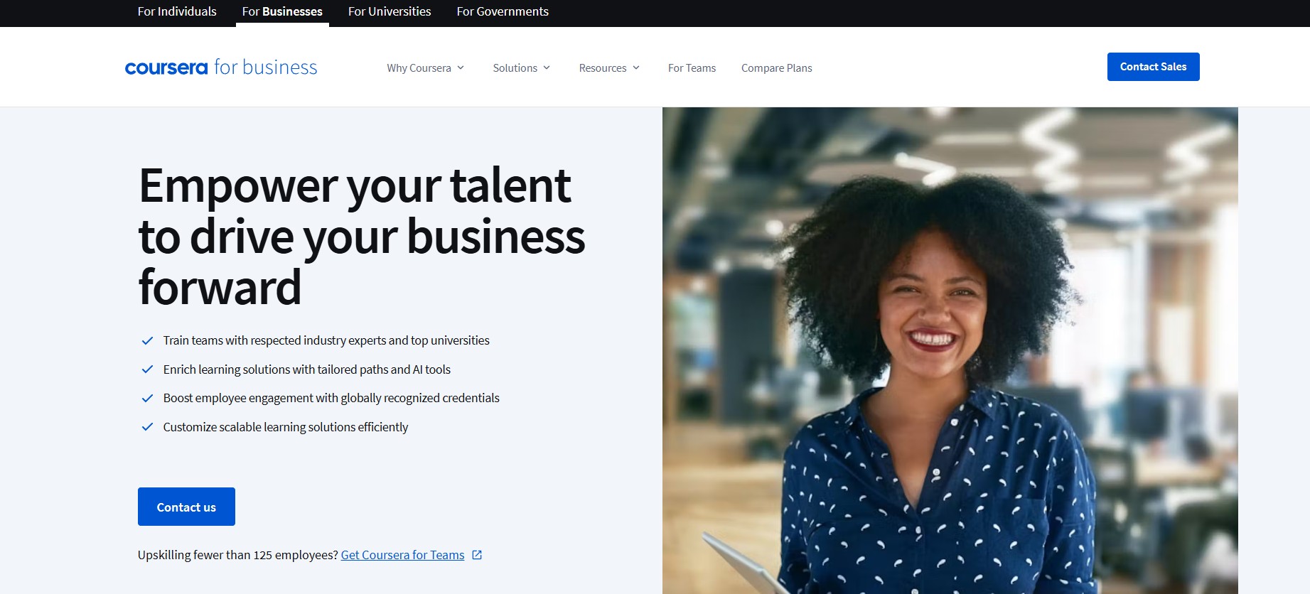 Coursera for Business helps organizations upskill their workforce with world-class courses from top universities and industry leaders. Designed to enhance employee productivity, retention, and engagement, Coursera provides flexible, scalable, and measurable learning solutions tailored to business needs.