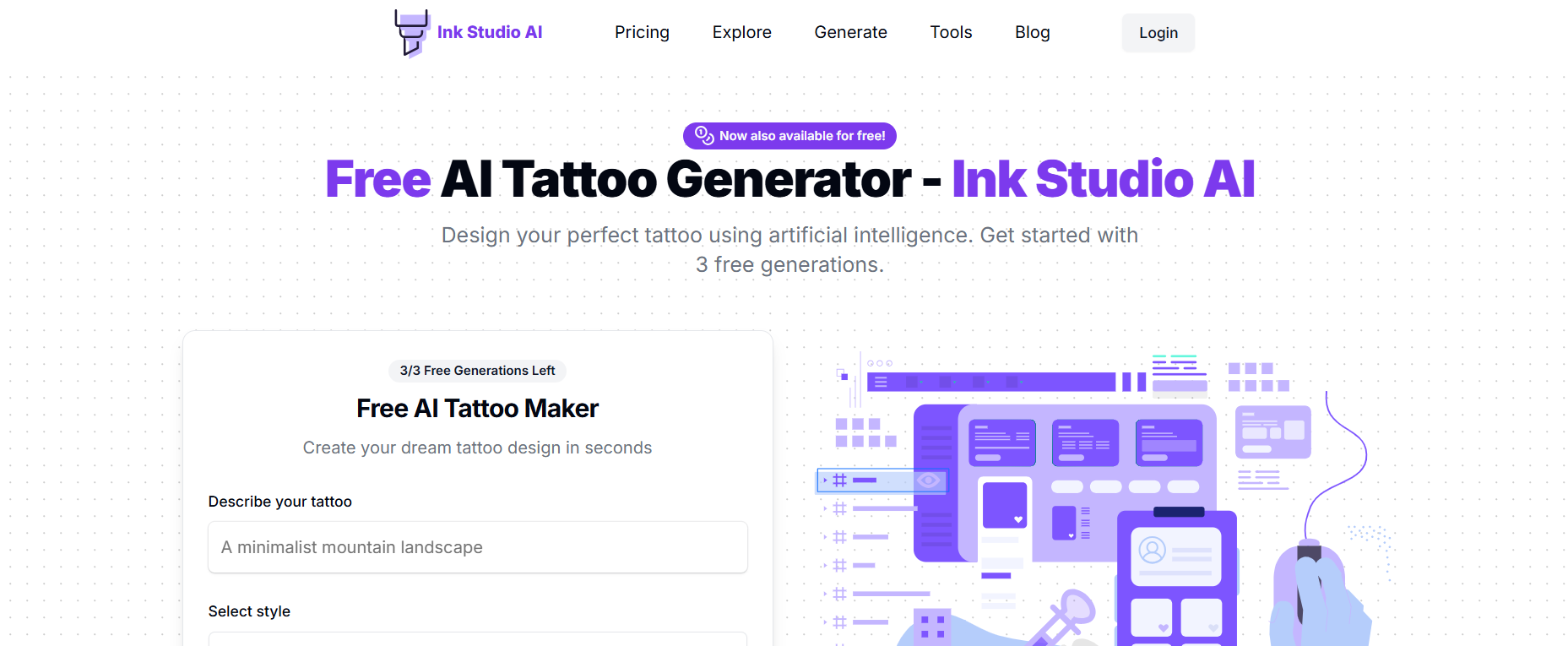 Ink Studio AI revolutionizes tattoo design with its advanced artificial intelligence tool, enabling users to generate unique and professional-grade tattoo designs within seconds. From traditional to modern styles, the AI offers detailed designs tailored to your ideas, making the process quick, easy, and accessible for everyone. Whether you’re looking to transform a specific image into a tattoo or you need inspiration for your next ink, Ink Studio AI is the perfect solution.