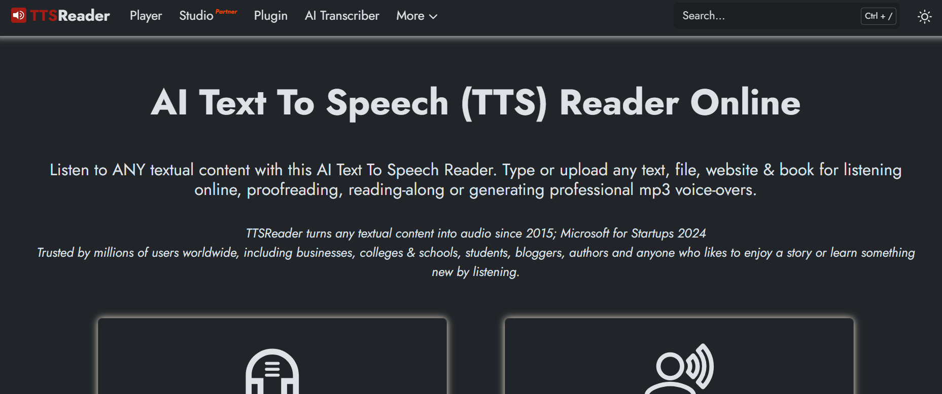 Experience the freedom of listening to any text with TTSReader, a leading AI Text-to-Speech (TTS) reader that transforms written content into natural-sounding audio since 2015. Whether you’re uploading files, pasting text, or browsing websites, TTSReader instantly converts it all into speech—no downloads or sign-ins required. Trusted by millions, including students, businesses, and authors, this free online tool offers versatile features like proofreading, audiobook creation, and professional-grade narration with Murf’s GenII AI voices, making it perfect for multitasking and accessibility.