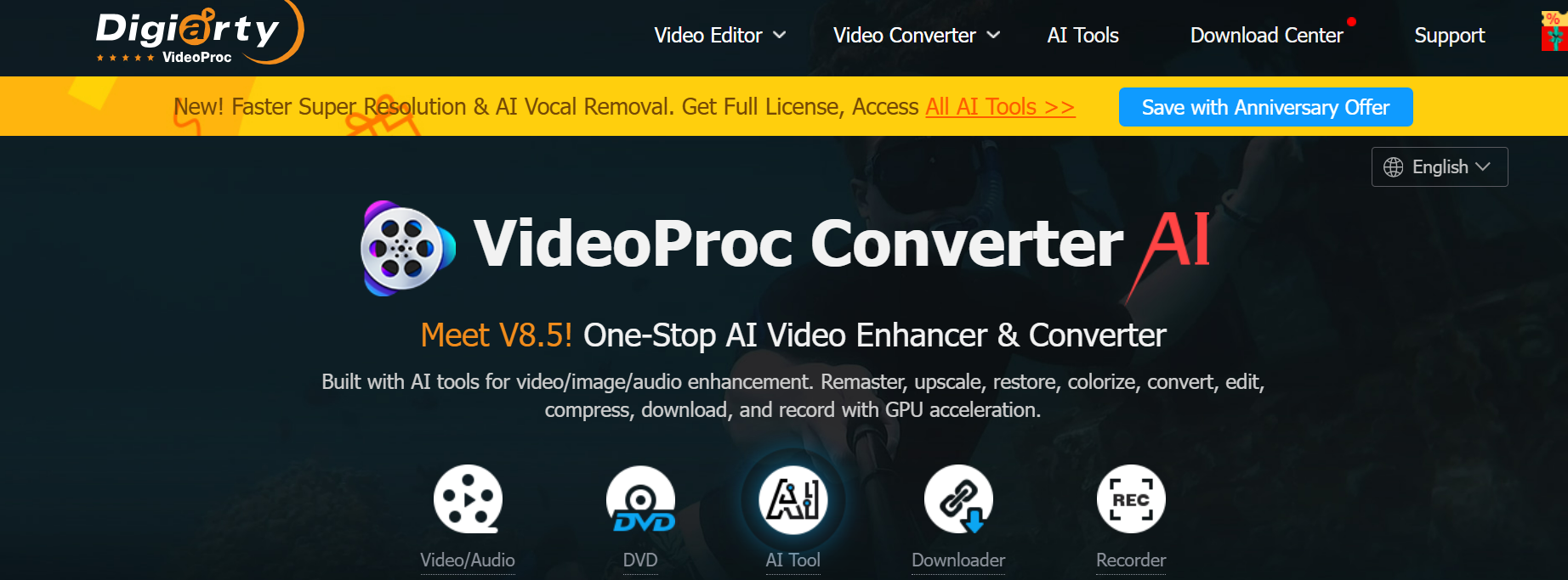 VideoProc Converter V7 is a powerful all-in-one video processing software designed to simplify creative workflows for professionals and everyday users alike. Equipped with advanced AI-powered features, VideoProc V7 enhances videos and images with remarkable clarity, smoothness, and stability.