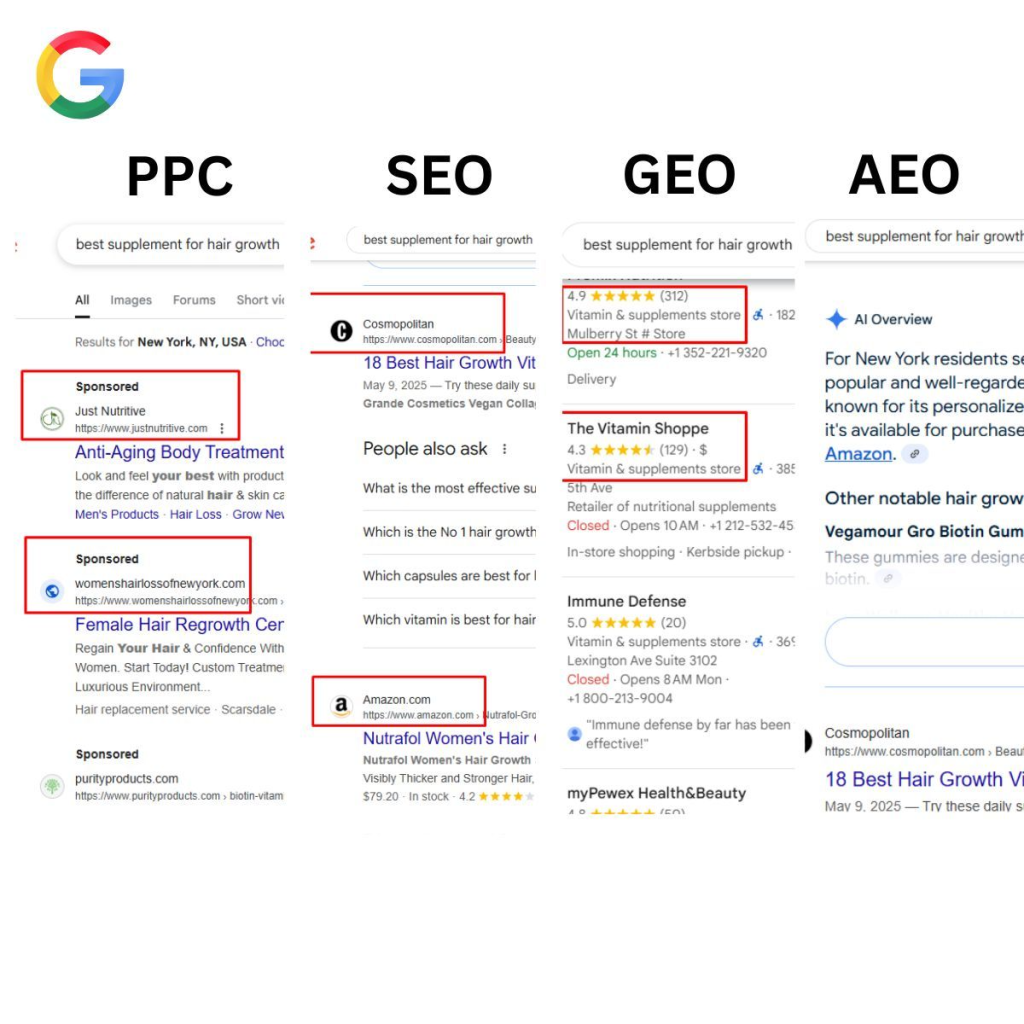 Integrated, these pillars amplify each other. PPC drives traffic, SEO builds authority, GEO ensures AI cites you, and AEO puts you in front of users asking questions.