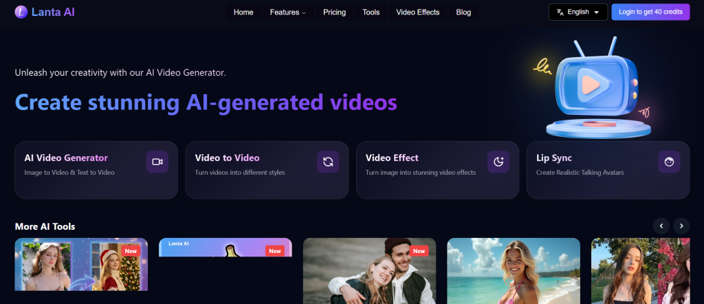 What it is: Lanta AI is a flexible cloud tool that generates or modifies videos from text and visual inputs using advanced AI.